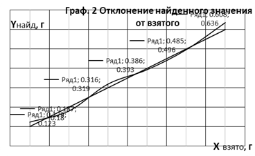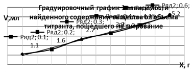 Результаты представлены в таблице 5. По данным таблицы 5 был построен график 1 зависимости найденного содержания вещества от объема титранта, пошедшего на титрование.