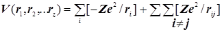 Отдельные диагональные слагаемые этой таблицы равны Vi= –Ze2/ri. Каждое из них представляет из себя энергию электростатического кулоновского притяжения одного из электронов к ядру. Недиагональные слагаемые Vij=+Ze2/rij. Полное выражение электростатической потенциальной энегии в атоме: