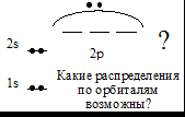 Перечислим все возможные варианты орбитальных размещений и спиновых комбина-ций 2-х электронов на трёх АО: |