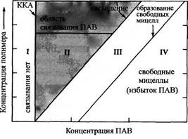 Экспериментальные результаты исследований ассоциации в смешанных растворах ПАВ и полимера можно обобщить следующим образом (см. рис. 4).