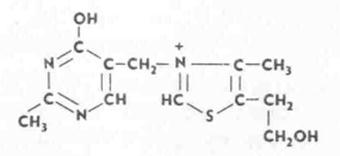 Антивитамины. Антивитамины делятся на две группы - структурные аналоги тиамина и тиаминазы. Структурные аналоги могут входить в состав молекул карбоксилаз, вытеснять из них тиамин, вызывая ингибирование их действия. К ним относятся окситиамин и пиритиамин (формулу первого см. ниже).