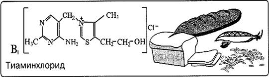 Витамин В1 способствует росту организма, а также нормализации перистальтики желудка и кислотности желудочного сока. Его недостаток сопровождается расстройством жизнедеятельности организма, бессонницей, раздражительностью, в тяжёлых случаях параличом нижних конечностей. Суточная потребность взрослого – 2 мг. Источником витамина В1 являются: хлеб из муки грубого помола, крупы, мясо, орехи. Особенно много витамина В1 в зародышах и оболочках пшеницы, овса, гречихи, в пивных дрожжах, зелёном горошке.