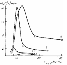 Как видно из приведенных данных, характер зависимости скорости полимеризации от концентрации мономера не зависит от природы эмульгатора, во всех случаях реакционная система была нестабильной и содержала коагулюм.