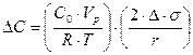 где С0 - концентрация адсорбированных ионов на плоской поверхности; Vр – равновесный объем иона; R – универсальная газовая постоянная; T – температура; Ds - понижение поверхностной энергии при адсорбции; r – радиус частиц.