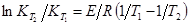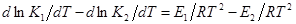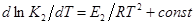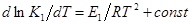 (1), где К – константа скорости хим. реакции. Энергетическая величина Е в этом уравнение называется энергией активации. Полученное уравнение описывает зависимость К хим. реакции от температуры. Разделив переменные и проинтегрировав, получим: