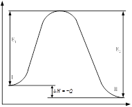 называют предэкспоненциальным множителем. Связь энергии активации с тепловым эффектом можно проиллюстрировать с помощью представлению о энергетическом барьере, который разделяет начальное и конечное состояние системы. I и II – уровни энергии вещ-в исходных и продуктов реакции.