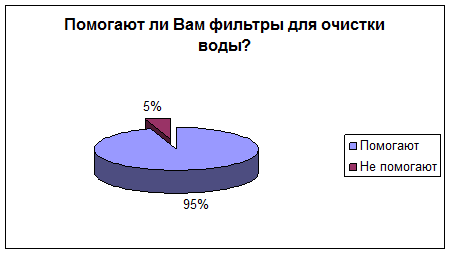 Итак, проанализировав полученные данные можно сделать вывод: большинство опрошенных людей пользуются фильтрами для воды и они им помогают очищать воду, посещают и положительно относятся к Святым источникам воды 80 % опрошенных, про лечение талой водой знают немногие, верят в свойства крещенской воды 95 % опрошенных. Опрос показал, что еще многим людям нужно разъяснять о качестве воды и как ее сделать качественной. Может быть, это должны быть специальные программы по ТВ или статьи в газетах для просвещения людей.