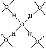 Подобное представление о строении молекулы позволяет объяснить многие свойства воды, в частности структуру льда. В кристаллической решётке льда каждая из молекул окружена четырьмя другими. В плоскостном изображении это можно представить так: