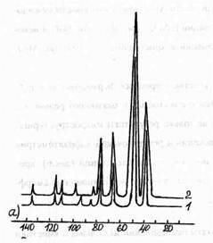 При замене никотиновой кислоты на сульфаминовую и при увеличении ее концентрации повышается степень кристалличности АОП при неизменности межплоскостных расстояний, а увеличение концентрации H2S04 — аморфизации АОП и некоторому возрастанию межплоскостных расстояний в кристаллической решетке А120, (рис. 5,а, б).