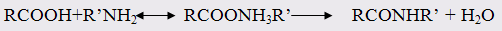 Прямое взаимодействие кислот с аминами в силу обратимости реакции проводят в присутствии избытка одного из реагентов, причем реакция легко протекает только с алифатическими кислотами с неразветвленной цепью, но с трудом - с ароматическими и пространственно затрудненными кислотами или с менее основными аминами [14].