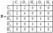 матрицы В, Е и R являются квадратными матрицами, недиагональные элементы которых bij равны числу связей атома i и атома j, а диагональные элементы bij (i = j) равны числу валентных электронов на атоме i в соответствующем соединении. R = E– B.