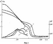 Результаты измерений динамических свойств исходных образцов, поглотивших 8,0 и 20,6% влаги, представлены на рис. 1 и 2. Из рис. 1 видно, что можно выделить три области вязкоупругого поведения полимерного композита: высокотемпературное плато, переходную зону и область температур, расположенную от 233 до 77 К.