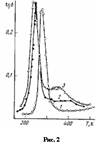 Это явление никогда не наблюдалось ранее в случае антипластификации. Другим типичным признаком антипластификации является подавление пика вторичных механических потерь (fi-пика) при введении пластификатора. Такой эффект наблюдался при антипластификации ряда эпоксидных смол [3]. Между тем оказалось, что с ростом концентрации влаги fi-пик не уменьшается, а увеличивается и расщепляется на два близко расположенных пика (рис. 1). Следует заметить, что возрастание fi-пика при увеличении содержания влаги наблюдалось ранее в полисульфоне [4]. Таким образом, и этот критерий указывает на то, что антипластификация не может быть причиной аномального увеличения модуля сдвига в области температур ниже 233 К.