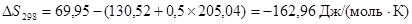 Из справочных данных[16] находим величины энтропии всех участвующих в реакциях веществ: