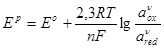 где аox, аred – активность окисленной и восстановленной форм вещества, а=Сγ, γ – коэффициент активности; С – концентрация вещества; ν – стехиометрический коэффициент.