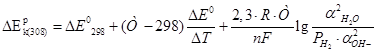 Величины температурного коэффициента стандартного электродного потенциала (напряжения разложения) приводятся в литературе или рассчитываются, как: