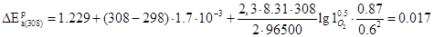 При изменении температуры (от 25 оС до 100 оС) можно пользоваться так называемым температурным коэффициентом стандартного электродного потенциала (напряжения разложения) dE/dT. Он показывает, на сколько вольт меняется потенциал при изменении температуры на один градус: