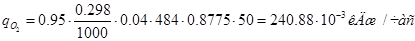 qкомп – теплота, необходимая для компенсации избытка или недостатка тепла, кДж/час;