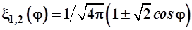 Подставив в (3.46) явные выражения базисных векторов (336) и (3.40), получим гибридные орбитали как функции полярного аргумента: