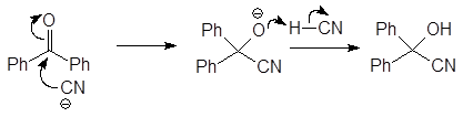Упр. 60. Напишите реакцию получения циангидрина бензофенона и опишите ее механизм.