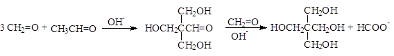 Большое практическое значение имеет реакция между ацетальдегидом и избытком формалина в щелочной среде: