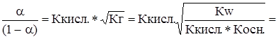 = (10-14) ½=10-7 Из выражения (27) далее видно, что если Ккисл. >Коснов., то рН< ½рКw, т.е. рН< 7 и раствор имеет кислую реакцию. Если Ккисл. < Коснов., то раствор имеет щелочную реакцию и рН > 7.
