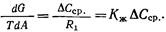 При малой концентрации десорбируемого газа в воде скорость процесса десорбции определяется средней движущей силой ΔСср и сопротивлением процессу диффузии в пленке жидкости Кж