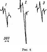 Рис. 5. ЭПР-спектры образцов ПС, обработанных озоном в течение 1 (1) и 6 мин (2) и через 30 мин после прекращения подачи озона (3)