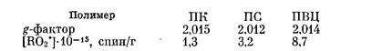 Действие озона на ПЭ и другие полимеры сопровождается образованием перекисных радикалов [7, 20, 48]. При исследовании [29] процессов образования радикалов в реакции с озоном 0,15–0,3 г порошка полимера вносили в ампулу (d~6 мм), помещенную в резонатор ЭПР-спектрометра. и через капилляр подавали озоно-кислородную смесь, содержащую 2,2-•10–3 моль/л 03. Через 2–3 мин после начала подачи озона возникали парамагнитные частицы, концентрация которых в дальнейшем либо оставалась постоянной, либо изменялась. Результаты этого исследования приведены ниже.