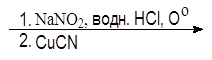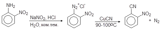 Замещение диазогруппы на нитрильную осуществляется также по реакции Зандмеера с использованием цианида одновалентной меди.