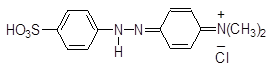 В молекуле этого красителя присутствует хромофорная двойная азот-азотная связь и ауксохромная диметиламиногруппа.