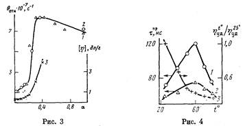 Переход клубок — глобула. Этот переход наблюдается в молекулах полимеров в условиях значительного усиления взаимодействий полимер — полимер, приводящих к выпадению полимера из раствора при концентрациях >0,01—0,03%. Метод поляризованной люминесценции, позволяющий исследовать очень разбавленные растворы полимеров, был применен для изучения перехода клубок — глобула для полимеров различных классов при формировании глобулы в различных условиях — в воде при нагревании [7] или при изменении рН раствора [10], в органических растворителях при изменении температуры [14] или при добавлении осадителя [5].