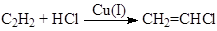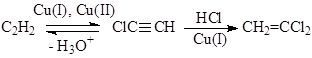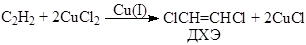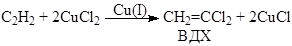 ) в безградиентом проточном реакторе при поддержании постоянными активностей Cu+ и Cl– и концентраций каталитически активных комплексов CumCln(n – m)–. При добавлении в этот раствор CuCl2 (5·10–3 – 170·10–3 М) скорость образования винилхлорида RВХ понижается, и появляются два продукта окислительного хлорирования ацетилена – 1,2-дихлорэтилен (ДХЭ) и винилиденхлорид (ВДХ):