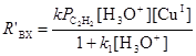 скорости образования которых RДХЭ и RВДХ проходят через максимум по мере увеличения [CuCl2]. При малых [CuCl2] наблюдается слабый рост ВХ от [CuCl2]. Для создания стационарного режима по [CuCl2] концентрацию Cu(II) поддерживали постоянной, окисляя Cu(I) электрохимически в ходе реакции. Скорость синтеза ВХ до добавления CuCl2 описывается простым уравнением