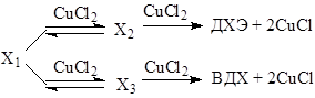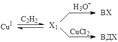 Квадрат по концентрации CuCl2 в числителе уравнений (16) и (17) свидетельствует о последовательном участии двух молекул CuCl2 в стадиях окисления Х1 до ДХЭ и ВДХ