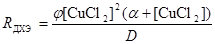 Зависимость отношения RДХЭ/RВХ от [CuCl2] при постоянных остальных параметрах системы описывается уравнением (16)