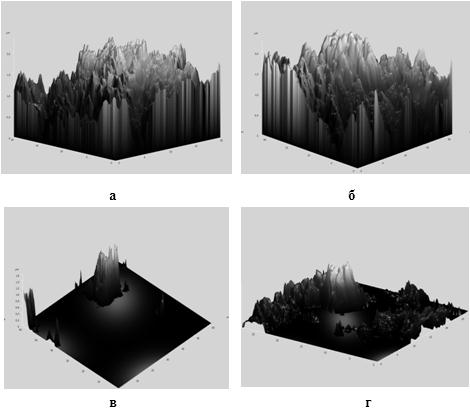 Рисунок 14 – Микрофотографии АСМ композитов на основе ЦЭПС с BaTiO3 в исходном состоянии (а) и после модифицирования введением оксидов кобальта (б) и ниобия (в, г)