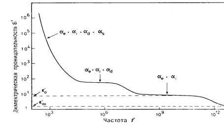 Общий вид зависимости диэлектрической проницаемости от частоты приведен на рисунке 1.