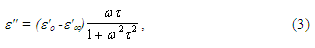 где w = 2pf (угловая частота), t - время релаксации (сейчас для описания сложных процессов поляризации в диэлектриках вводится понятие "распределение времен релаксации").