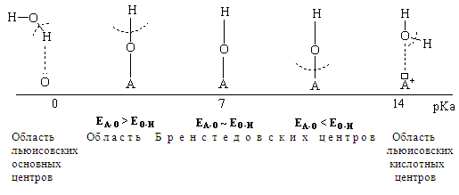 Рисунок 8 - Схема донорно-акцепторных свойств частично дегидратированной поверхности твердого оксида