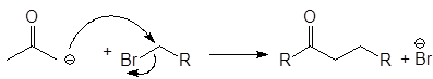 Енолят-анионы могут реагировать с алкилгалогенидами по механизму SN2