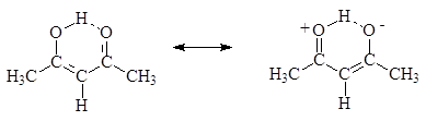 Cтабильность енольной формы b-дикарбонильных соединений объясняется возникающим сопряжением и образованием внутримолекулярной водородной связи: