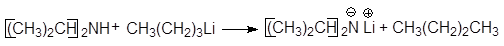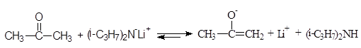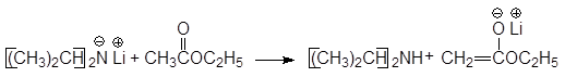 При использовании более сильного основания, такого как диизопропиламид лития равновесие сдвигается вправо: