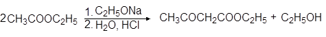 Под действием алкоголята натрия две молекулы этилацетата конденсируются в ацетоуксусный эфир: