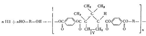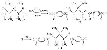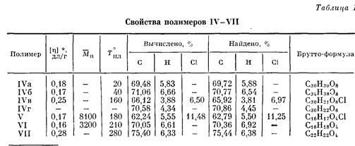 Поликонденсация камфороилхлорида с хлоргидрохиноном, гидрохиноном и 4,4'-диоксидифенилом также привела к получению полимеров V— VII, не обладающего ЖК-свойствами (табл. 1).