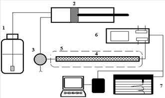 Рис. 1 Блок-схема жидкостного хроматографа: 2 – насос предназначен для создания постоянного потока растворителя. Его конструкция определяется, прежде всего, рабочим давлением в системе. Для работы в диапазоне 10-500 МПа используются насосы плунжерного (шприцевого), либо пистонного типов. Недостатком первых является необходимость периодических остановок для заполнения элюентом, а вторых - большая сложность конструкции и, как следствие, высокая цена. Для простых систем с невысокими рабочими давлениями 1-5 МПа с успехом применяют недорогие перистальтические насосы, но так как при этом трудно добиться постоянства давления и скорости потока, их использование ограничено препаративными задачами.