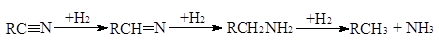 а нитрилы – в имины, амины и углеводороды: