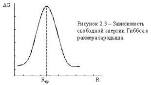Критическому размеру зародыша Rкр, как уже отмечалось, соответствует максимуму свободной энергии. Тогда для R=Rкр выполняется условие
