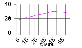 В процессе перемешивания происходило изменение температуры, представленное на рисунке (2.1). Раствор перемешивался до понижения температуры, что свидетельствовало о завершении процесса гидролиза.