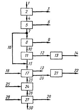 Схема процесса выделения химических соединений из отработанного сульфатного раствора для варки целлюлозы и из сточных вод процесса отбеливания большие потери вещества, то может быть проведено извлечение карбоната и сульфата натрия путем выщелачивания кристаллического материала в аппарате 8. Извлеченные вещества 15 могут быть возвращены на одну из стадий процесса до содового сепаратора 4.